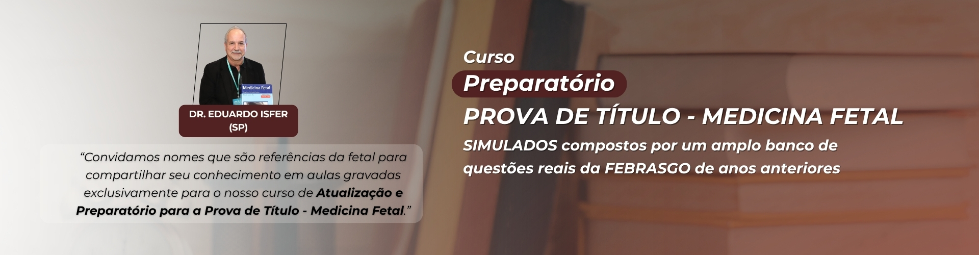 O curso conta com a coordenação do Dr. Eduardo Isfer, um dos pioneiros da Medicina Fetal no Brasil, que reúne ampla experiência acadêmica e clínica, trazendo ao curso uma abordagem sólida, atualizada e alinhada às melhores práticas da especialidade. O Curso de Atualização e Preparatório para a Prova de Título em Medicina Fetal é 100% online e foi desenvolvido para médicos que desejam revisar, atualizar e consolidar conhecimentos teóricos e práticos exigidos na prova de título da FEBRASGO, bem como aprimorar sua atuação clínica na área.